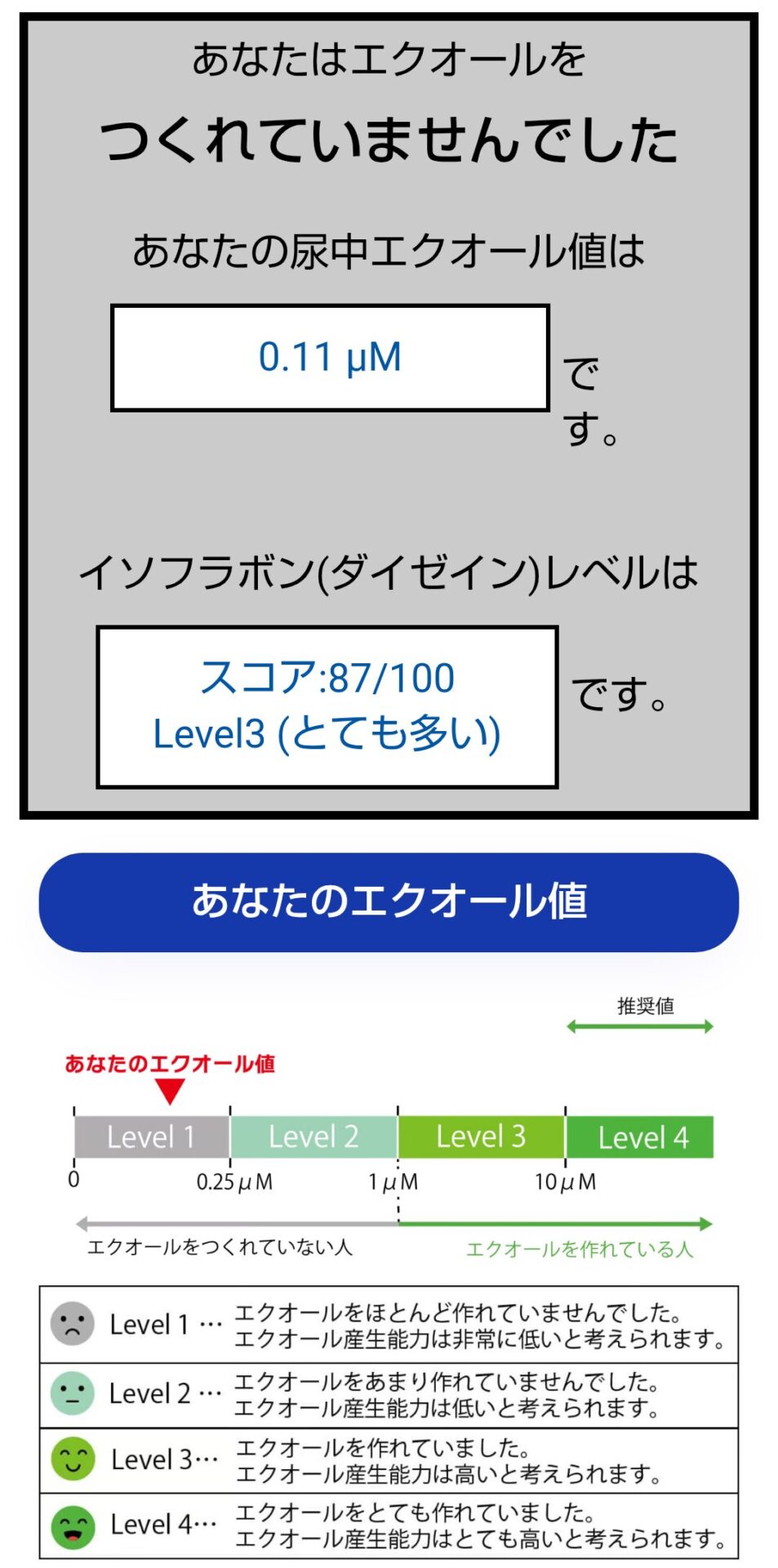 キットは楽天で購入しました。自分で採尿して郵送するだけです。結果はスマホで確認します。残念ながら私はエクオールがほとんど作れないことがわかりました。