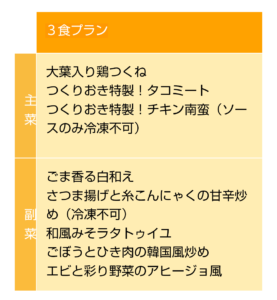 就業開始の一週間だけで退会するつもりだったのですが、システムをよく理解しておらず今週分が来てしまいました。メニュー内容は次のとおりでした。